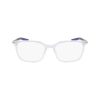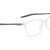 ARM NIKE 7227 900, FRONTAL EM ACETATO TRANSPARENTE, HASTES EM METAL NA COR CINZA E PONTEIRA AZUL, SUPER ESTILOSO E MODERNO.